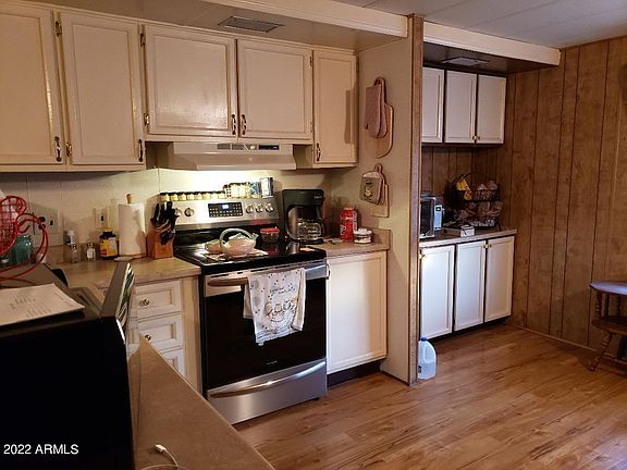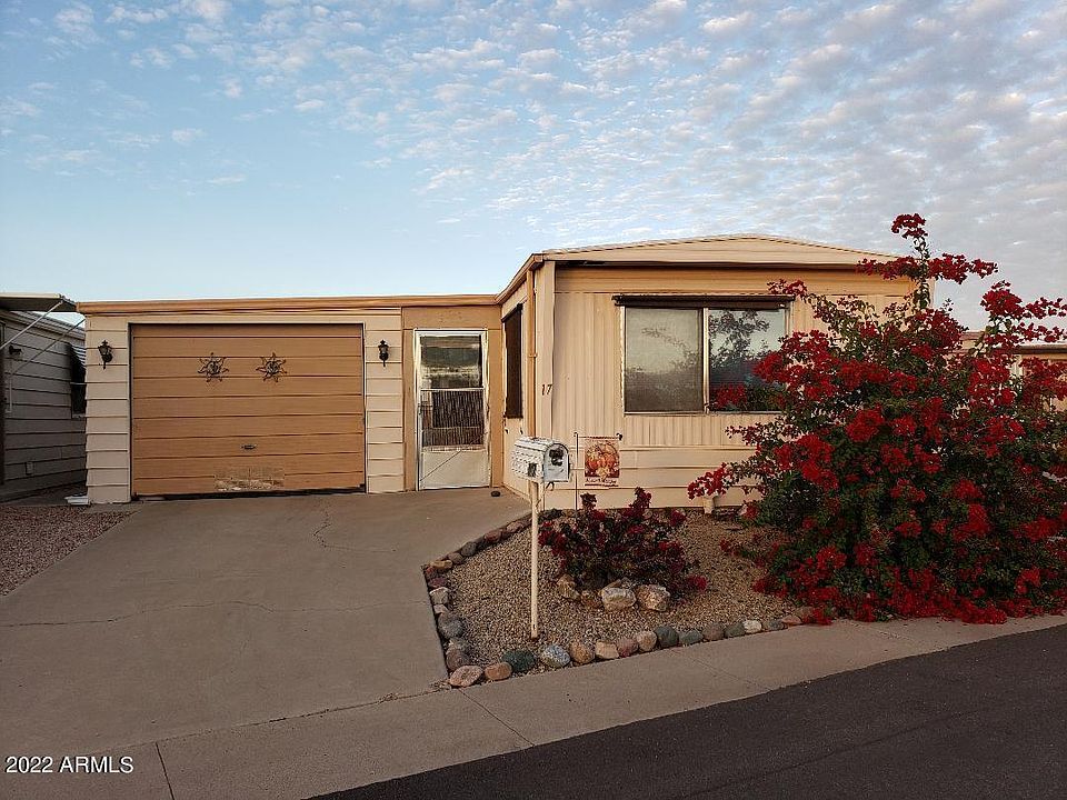 Look at this move in ready 2 bedroom 1 bath mobile with a 1 car garage. Bedrooms are good size, bathroom has a walkthrough from bedroom and from hallway. Inside laundry, new stove, and fridge. Outside you will find an enclosed arizona room with a 1/2 bath that will need to be finished(all not included in the description of the actual home or square footage. A workshop area in the garage. A good size fenced yard and easy low maintenance landscape.