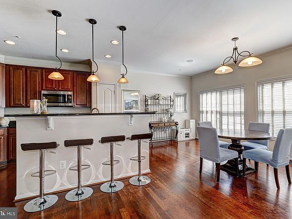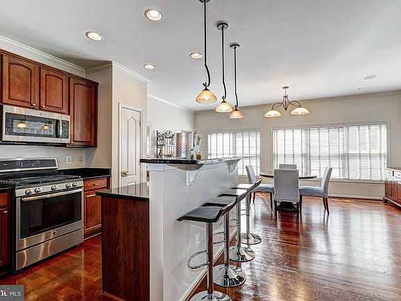 Stunning end-of group brick townhome located in the highly sought after community of Governors Grant offering four spacious levels with gleaming hardwood floors, classic moldings, and sundrenched interiors! Expansive living room appointed with lofty windows and a gas fireplace perfect for entertaining family and friends; Eat-in kitchen equipped with granite countertops, 42" cabinetry, center island, pendant lighting, breakfast bar, pantry, and a casual dining area; Retreat upstairs to the expansive primary bedroom suite accented by soaring vaulted ceilings, walk-in closet, and en-suite full bath featuring dual vanities, jetted soaking tub, glass enclosed shower, and water closet; Two additional bedrooms and full bath complete the upper level; Fourth floor loft space provides a private fourth bedroom, possible office space, or workout room with a closet, storage area, and attached half bath; Lower level features a bonus room, garage access, laundry room, and powder room; Community Amenities: Just steps from The Mall in Columbia offering shopping, dining & entertainment. Convenient access to commuter routes US-29, MD-32, and Rt. 100. Minutes from Fairway Hills Golf Course, Hobbit's Glen Golf Course, Howard County Community College and Merriweather Post Pavilion.