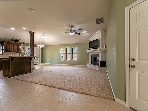 This lovely 3bd 2ba home located in the Beacon Hill addition offers cul-de-sac living and so many extras. It features an EXTRA 10x10 ROOM off the primary bedroom (perfect for home office/nursery/workout room). It is nicely landscaped with sprinklers front and back. Upon entering the home, you cannot miss the open space remodel which incorporates the great-room concept and includes a completely upgraded kitchen. Beautiful quartz composite countertops, custom cabinetry, storage everywhere and even a walk-in pantry. Elegant décor like custom light fixtures, accent walls, ceiling fans in every room and a beautiful custom fireplace mantle give this home a feel of elegance. Walk-in laundry room features an oversized space designed with flexibility in mind. It even has a dedicated circuit for a second fridge. Spacious bedrooms and dual vanities in the guest bathroom offer even more flexibility. But the real gem is the 17x13.5 primary bedroom. Oversized with vaulted ceilings, this one really shines. The primary bath features an oversized walk-in shower, a jetted tub, dual vanities on separate ends of the bathroom and dual walk-in closets with custom shelving. French doors in the primary bedroom or the dining room will lead you out to a VERY spacious backyard with no rear neighbors and brick fencing along the entire back length. There is a huge 27x16 patio with café lighting, perfect for entertaining. And we haven’t even gotten to the 8x8 (6-person) Master Spas Hot Tub. The backyard includes mature landscaping with a large above ground pool and custom deck to keep you cool in the summer. There is side yard access for small trailer/boat storage. The home also features a newer roof, replaced 2020, a tankless hot water heater, and an oversized Trane HVAC system (3.5 ton w/smartphone controls). Don’t miss this one.