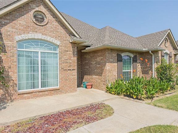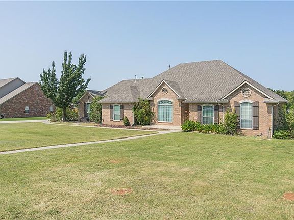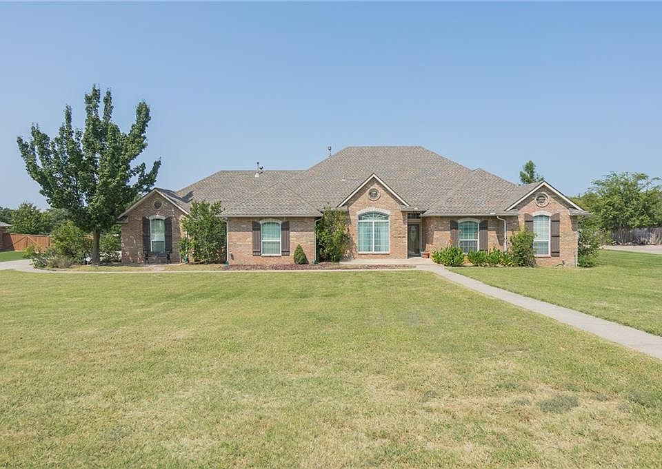 Suburban oasis a few minutes from Tinker A.F.B. This spacious home sits on an acre with mature trees along the back of the property. Large 2-rocker front porch. Cool tile in foyer, large formal dining with chair railing and floor to ceiling window. Formal living room has wall of windows and door to home office/fitness room. Breakfast area has bay window looking into pool and back yard. Fireplace in the Family room and door with transom window onto patio. Kitchen has great 'work triangle' and breakfast bar, corner sink and lots of storage. Huge master bedroom has tray ceiling. Master bathroom has chin deep jetted tub, separate shower and two vanities. Secondary bedrooms are large. Spacious covered patio, fenced pool and brand new deck for year-round enjoyment. Extra wide driveway for overflow parking. Storage building in large back yard. Mature shade tree out front, clusters of trees in the back and wooded lot behind house provide lots of privacy and bird-watching opportunities.