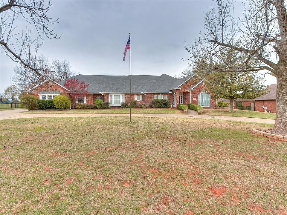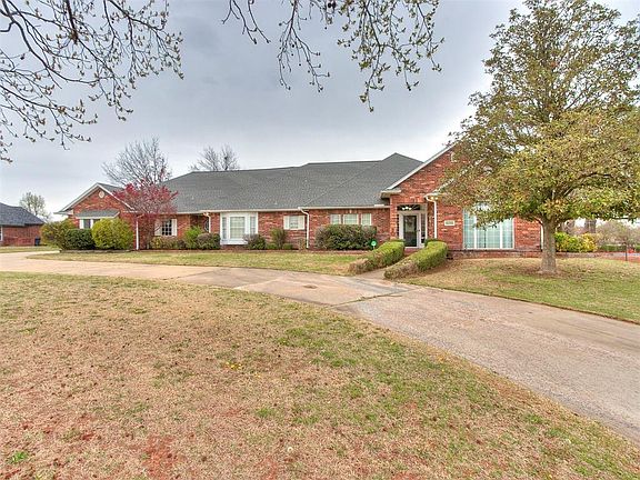 Hard to find home on acreage less than 10 minutes from Tinker Air Force Base. Your new home sits on 1+ acre and is fully fenced with a double gate (over 12K to install today)! Your move-in ready home includes a well, fully enclosed sunroom with heat and air, 2 HVACs (one replaced in 2023), water softener, wood style tile, circular drive, newer appliances (3 years), full guttering, and a 10/12 person storm shelter! Your 3-bed home offers a designated study with a built-in, formal dining/or pool table space, and a wet bar area perfect for entertaining or holiday gatherings. All the bedrooms are oversized, and easily hold queen/king-size suites with attached bathrooms. Also, included are 9 ceiling fans, 4 walk-in closets, built-ins, and tons of storage. The 15x9 enclosed sunroom includes heat and air, perfect for a hobby room, painting area, or workout space. All this is located in the Carl Albert schools & minutes away from Boeing, Tinker, shopping, and dining.