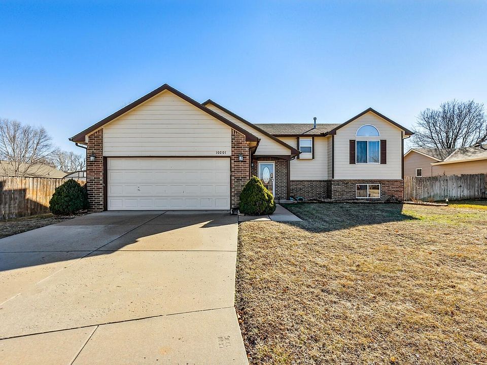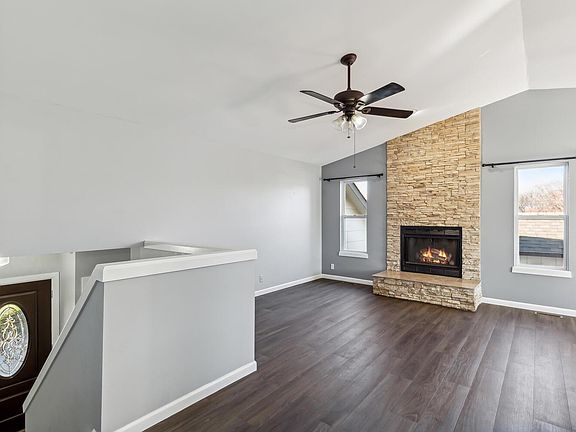 Step into this exquisite abode and prepare to be captivated! Upon entering, you'll be drawn upstairs by the stunning luxury vinyl flooring, elevating the ambiance of the space. The sophisticated living room is accentuated by tall windows framing a magnificent floor-to-ceiling fireplace, creating an inviting atmosphere. Seamlessly transition into the dining room, ideal for hosting unforgettable dinner parties. The kitchen is a chef's delight, boasting both style and functionality with abundant granite counterspace, perfect for culinary creations. Don't miss the contemporary backsplash beautifully illuminated by updated light fixtures. Retreat to the master oasis, offering ample space to unwind and rejuvenate. Entertain effortlessly all summer long with a spacious family room, covered deck, patio, pool, and firepit. Nestled in the sought-after Goddard school district, this impeccably upgraded home is a rare gem awaiting your arrival. Welcome home to luxury living at its finest!