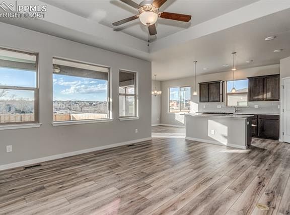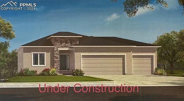 This is a brand new Ranch style home with a huge 5 CAR GARAGE in Paint Brush Hills. The main level offers a large Master bedroom with coffered ceilings and attached private Master bath with huge shower, ceramic tile and solid surface counter tops. Attached is the huge walk-in closet. Very open kitchen with large dining area. All soft close cabinetry, recessed lighting, solid surface counters and stainless steel appliances. Enjoy the open living room with a beautiful fireplace and walk-out to the patio with incredible views of Pikes Peak. There is an additional bedroom and a study on the main level. The fully finished basement with 9 ft ceilings features 3 additional bedrooms and a full bathroom. The large rec. room has all the space you need for entertaining your family and guests including a wet bar. Bring all your toys as the huge 5 car garage offers plenty of space. Hurry, buyers can still pick all colors and choose from different options. This home has an estimated completion date of 08/31/21.