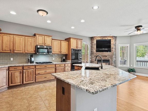 ; OPEN HOUSE Sunday Aug. 11 2-4 pm. This adorable property has all the space you need, has architectural character, and is located on a cul de sac street with an extra large lot. The updated kitchen has granite countertops, an island with lots of bar stool seating, pantry, hardwood flooring, granite sink, backsplash, and is situated against a 3 way fireplace and hearth room. The 2 story great room is 20x16 with options for furniture layout, and blinds on the wall of windows. Main level primary suite offers a private retreat with trey ceiling w crown molding, accent lighting, and large full bathroom. The upper level provides a loft, front bedroom with vaulted ceiling, & full bathroom. Don't miss touring the 1866 SF finished basement featuring a bedroom with glass french doors and walk-in closet, full bathroom with tile floor, 3 daylight windows, a large wet bar area with raised countertop and crown molding. Freshly painted and new carpet. Attached 3 car garage with service door to patio. Trex deck boards amidst a shaded backyard. Plumbed for irrigation system. Roof was new 10/23, New furnace 7/20. Fabulous neighborhood with custom homes and an association swimming pool for you to enjoy during the hot summer days! Don't miss touring this one!!