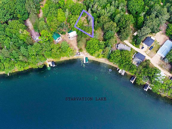 AMAZING COTTAGE WITH FABULOUS VIEWS OF STARVATION LAKE! This one is simply adorable - very nice updates, 2BR cottage with cut stone fireplace, slide doors to a large deck for amazing views! Property is immaculately maintained, cozy as can be! Open ceilings to give it a more spacious feeling! This is a great place to get away from it all. Short walk to a shared 8' access lot so you can launch your kayak, or take a quick swim!! Great location near the Blue Bear Snowmobile Trail and close to thousands of acres of State land, Twin Lakes area and more! Truly a wonderful place to get away from it all!