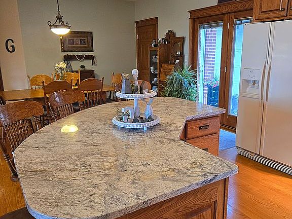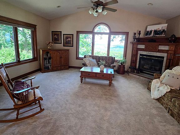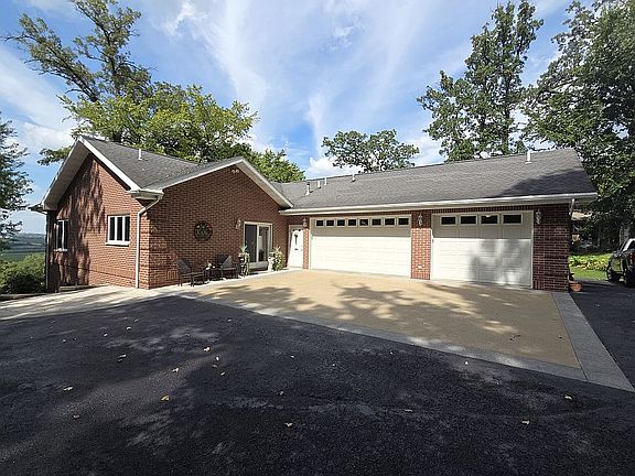All brick house located on .95 wooded acreage in popular Southern Dubuque at 10202 Military Rd. 1785 sq ft on each level. Large three car garage up and down. Solid oak cabinets, doors and trim. Granite counter tops. In floor heat in basement. Natural gas fire place in living room. Triple pane Pella windows. Walk out basement to a stamped concrete patio. Beautiful panoramic view.