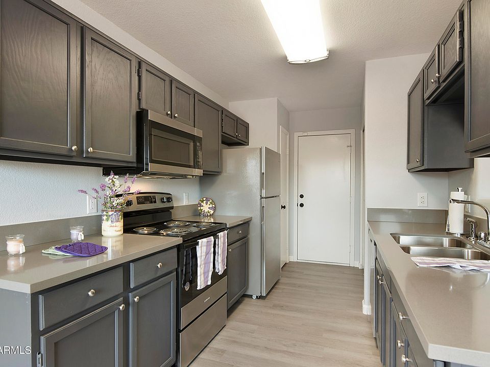 Have you been looking for a Glendale home with quick access to 101, then this might just be the one. NO HOA. 3 bedroom, 2 bathroom single level home located on an oversized corner lot. Open living area with a breakfast nook and vaulted ceilings. Seller is in the process of installing new luxury vinyl plank flooring throughout the entire home plus new kitchen counter tops, resurfaced kitchen cabinets with hardware added, new stainless kitchen appliances as well as both bathrooms remodeled & fresh two tone decorator interior paint. Exterior re painted too! New roof in 2022. RV gate and parking at the side, no HOA to prohibit keeping your toys on your property. This home is in n a great location within walking distance to Monroe Park. Keep in mind that easy access to freeways.