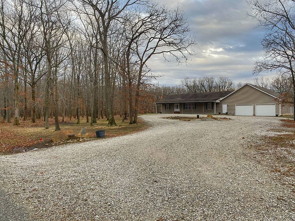 Home for sale Benton County Missouri Country Home for sale Clinton Missouri this home on 12.75 ac+/- is located just inside the Benton County Line. Property borders the Corp of Engineers Land. Home has 3 bedrooms 3 bathrooms and totals over 3100 sq ft. Finished basement with partial kitchen. Over sized shop with lots of storage. Beautiful setting, you will fall in love with the property. Lake Home for sale Truman Lake Home has a beautiful setting inside the 12.75+/- wooded acres. The rooms are all large with plenty of storage. Country kitchen with island and lots of cabinets. and dining room. Huge living room with great views from the front window. 2 bedrooms upstairs including the large master bedroom, full bath and walk in closet, laundry room is upstairs as well. Utility room sits between the kitchen and garage. You will love the monster 2000 sq ft garage as its 40' wide and 50' deep with tall ceilings. Wide staircase takes you to the fully finished basement, with one big bedroom, spacious living area, full bathroom and a partial kitchen. All kitchen appliances upstairs and down stay as well as the washer and dryer upstairs. Property has a shared well that is located on this property. The septic lays in the back with lateral fields. Land for sale Benton County Missouri Property has 12.75+/-ac that borders the Corp of Engineers ground surrounding Truman Lake. This gives you access to thousands of acres of hunting and fishing. The deer and turkey hunting in this area is tremendous. The area has a large whitetail population as deer and turkey walk by the home on a daily basis. Large bucks have been harvested in the area as well. The turkey population is excellent and spring turkey season is just around the corner. Property is primarily all traditional Ozark timber. Lots of of oak trees with great stand locations for the hunter. Long Shoals boat ramp is only 12 minutes away. Benton County and Henry County This property is located near Tightwad Mo in between Clinton and Warsaw 1 mile north of 7 highway behind a locked gate. There is a HOA and $150.00 per year road maintenance fee. Very secluded yet close to town with easy access. I cant say enough about this property as its close to Truman Lake and only 25 minutes to Lake of the Ozarks. Lots of area restaurants and plenty of shopping nearby. Excellent hunting, surrounded by the Ozarks and just waiting for you to move in as this home needs nothing and is move in ready. Leesville elementary and middle school and Clinton High School.