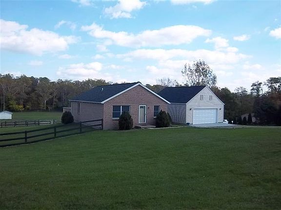 Over sized 2 car garage! 5 Acre horse ready property. 2 bedroom brick cottage has laminated flooring and 2 heat sources. The kitchen is open to dining area and has a breakfast bar. Master bedroom with walk-in closet that walks out to a great deck with views of the pasture and woods. Barn has two nice stalls, tact area and water . Over an acre of woods with a creek. VALLEY VIEW SCHOOLS