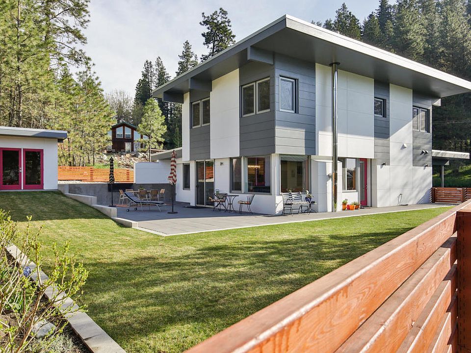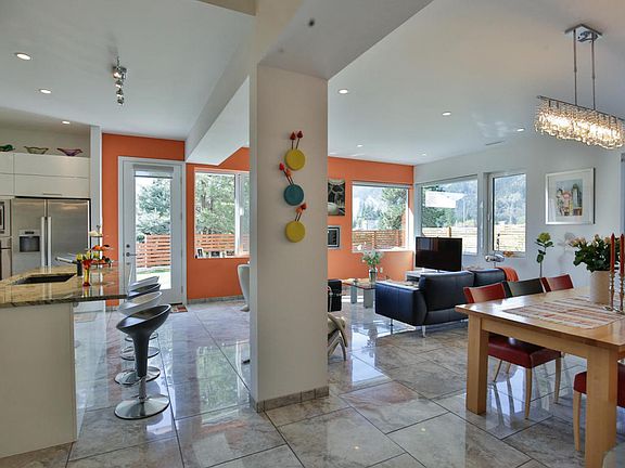 Modern Town Villa with beautiful views of Wedge Mountain located in city limits off Titus Road. This new home offers a luxury living style that combines spacious rooms, natural light with a modern feel. The kitchen is open to the living and dining, complete with large pantry, induction cooktop, Bosch appliances and a large granite island. Great room area showcases porcelain tile floor, contemporary fireplace and amazing views. Atrium Tilt and Turn Windows throughout are beautiful and completed by exterior German roller shutters . Master bedroom is located on the main floor and allows access to the patio that is secluded and plumbed for a hot tub. Master Bathroom includes wet room style shower complete with ''Kaldewei'' tub, a Finnish style dry sauna and porcelain tile walls and