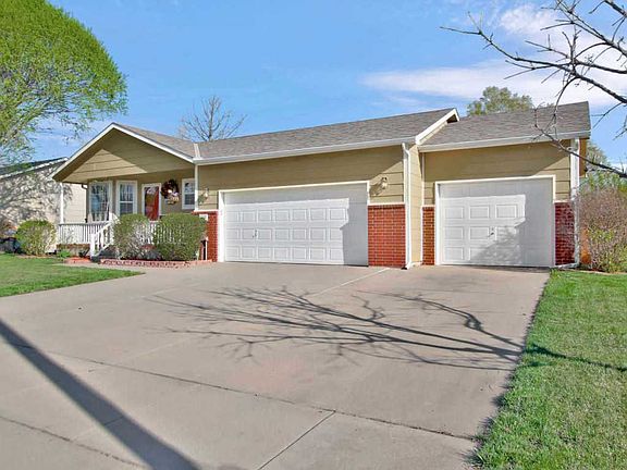 Stunning 5 bedroom, 3 bath, 3 car garage in Goddard School District! Vaulted ceilings in the living room and kitchen welcome you as you enter in. Brand new carpet installed throughout the house and fresh paint make it move-in ready. The main level houses an inviting master bedroom & bathroom, with two additional bedrooms and a bathroom. A kitchen slider overlooks a beautiful backyard and an over-sized deck perfect for backyard barbecues in the summer and fun experiences around the outdoor fire pit in the fall. Downstairs you'll find a exquisite wet bar, with plenty of room for a full sized refrigerator. An added touch is the dimmable lighting, featured throughout poignant locations and the surround sound hook-up. This spacious family room is an enjoyable place to gather with friends and family, ideal for those who enjoy entertaining and hosting guests. Laundry room is located in a spacious third bathroom in the basement. Additionally, the basement offers 2 bedrooms and an enormous walk-in closet with beautiful wood shelving. Another exciting addition to the side of the house is the covered storage shed, painted like the house, fully equipped with shelving, lighting and outlets, to store mowing equipment and much more. This home is a must see!