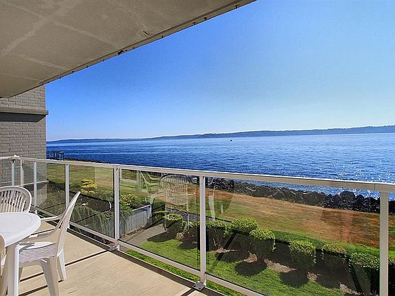 This is the best kept secret in Seattle & one of the most serene and unique spots to live in the entire city.2nd fl condo w/lrg kitchen, sub-zero fridge, newer range & microwave, Swedish hardwoods in entry, kitchen, hall & baths.Master w/full bath & drop dead view as you awaken every morning.The 2nd bedroom has sliding doors so you can use it as a guest bd or den.Enjoy the outdoor heated pool or just take a stroll on the more then 600 ft of beach or just sit on your deck. Don't miss it!