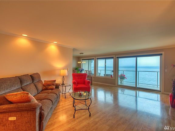 Enjoy panoramic views of the Sound & Olympics minutes from the elevator on your new covered deck on the waterfront. Spacious 3 bedroom top floor end unit completely renovated down to the studs in 2010. Updated features include cherry built-ins, radiant heat, hardwoods, new carpet. Cable TV, Wi-Fi, Rec Room, Sauna, Outdoor Heated Pool, Boat Launch, 600' of beach are just a few of the amenities offered by this very well maintained private quiet complex where everything is taken care of for you.