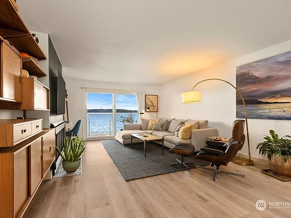 The West Beach Condos are a unique community offering a soothing respite from city life. Wake up to stunning views of Vashon Island and the Olympics from your top floor unit. Spend afternoons whale watching from your balcony, main living area & primary suite. Cozy up next to a fire to watch dramatic NW winter storms from high above the waves. Sitting at the highest point in the complex and means peace, quiet, light & views for days. A deeded parking spot and level entry to the elevator & unit means you won't be schlepping groceries down pathways or up flights of stairs. A large workshop for woodworking & handy needs, community room w/ kitchen, sauna, heated pool, kayak and bike storage all make this place an incredible place to call home.