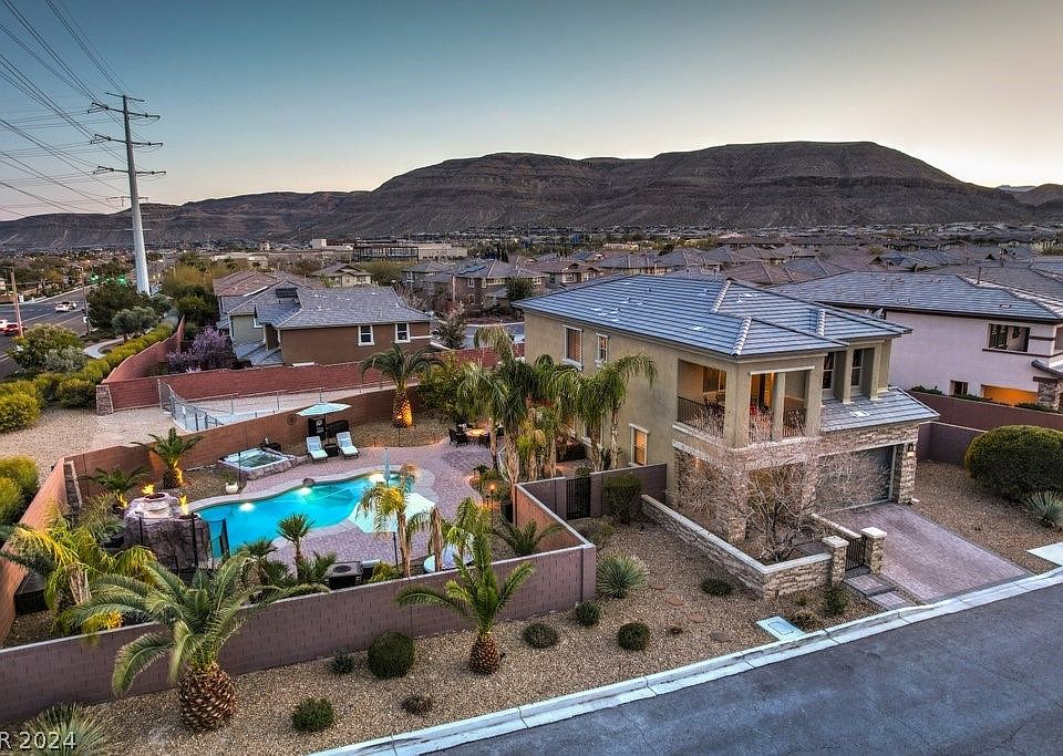 Beautiful Cul de Sac Home in Ladera @ the Mesas. An Entertainers Dream Backyard! Rare HUGE Property, Almost a Quarter Acre in Summerlin South! Custom Heated Pool with Wet Deck, Waterfall and Fire Features. Separate Spa, Gas Fire-pit, Pavers and Stamped Concrete Patio with Garden Pergola and Fruit Trees surrounding your Outside Oasis!