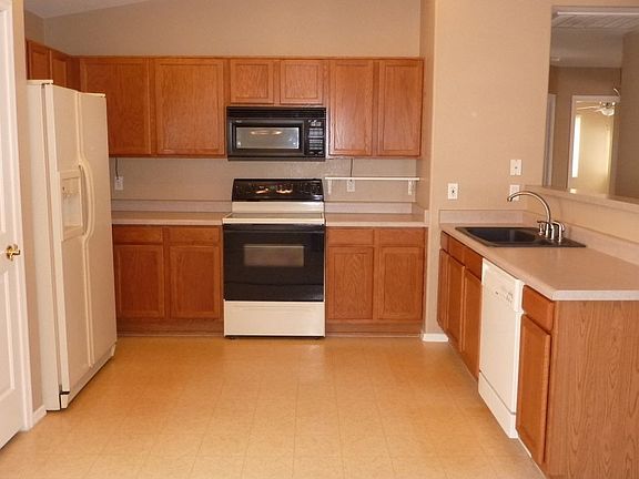 Gorgeous 4 bd, 2 ba home that is move in ready! Peacefull backyard that's fully landscaped. Easy care drip system with a fountain. Kitchen has stone sink, refrigerator and opens up to the great room. 4th bedroom/den has a closet & double doors that open up to the great room and has a door that opens from the hallway. Master bath has dual sinks, separate shower & tub & nice size closet. Decorator paint throughout. In the backyard, the owner put additional electric & water against the back wall.