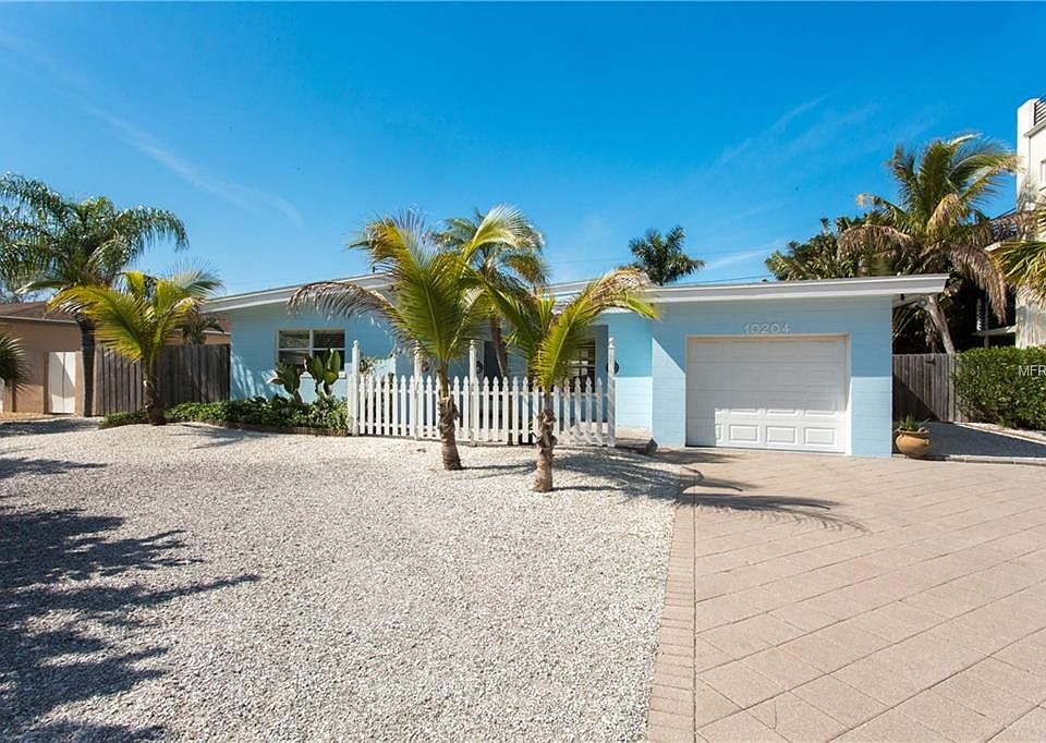 Paradise awaits! This meticulously maintained home is a sight for the eyes. From the moment you walk in you see the shining terrazzo floors, high ceilings, a very large open air covered lanai and gorgeous sun filled pool. You will feel as though you are staying at a resort as you lay by the pool with tropical landscaping and outdoor shower. Think Key West or Ernest Hemingway as you stroll from room to room. There are two large bedrooms with a vintage LIKE NEW bath in between. The kitchen is updated, spacious and clean with a window that's looks over your tropical oasis out back. The garage is an oversized one car garage with separated laundry area and one of the most adorable bathrooms you will ever see. This place really is a rare gem that you must see to appreciate. Paradise Island offers a park, playground, golf course and tennis courts at Treasure Bay Golf & Tennis Club. You are just a stroll or bike ride to the beautiful beaches of Treasure Island. Enjoy shopping and dinning close by. Please note Roof replaced 2017, AC approx. 2 years old, Hot water heater less than 2 years old and hurricane shutters for all openings convey. Put this one on your list to see today!