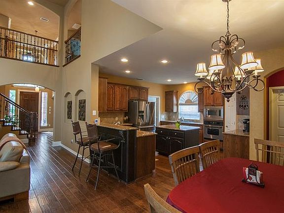 GORGEOUS home in desirable W. Frisco. Features mature trees along with drought tolerant landscaping & stone accents. Ext also offers stone elevation, sprinkler, extended patio with built-in fireplace. Int offers a versatile floor plan with extensive hardwoods, 2-story stone fireplace, custom paint touches, granite c-tops, ss appliances & decorative lighting. Carroll-Cobb-Wakeland schools. Nautilus gym in photos can stay for additional $$$.