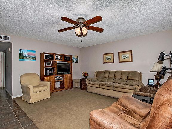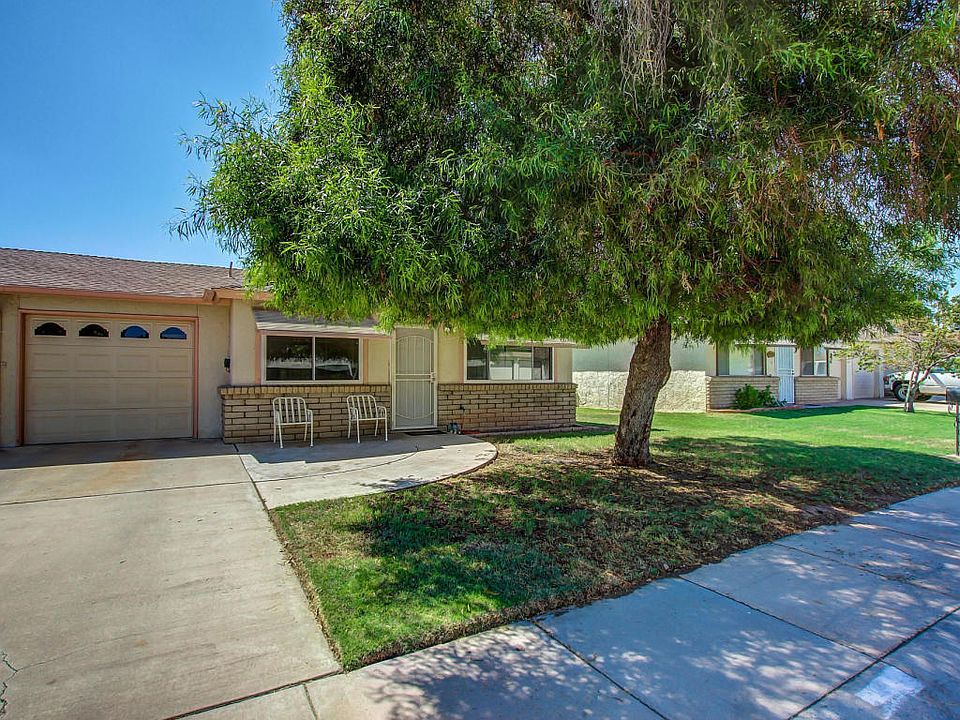 Absolutely Charming Home with great curb appeal and move-in ready. soothing interior palette, ceiling fans, beautiful tile floor, window blinds, and neutral carpet in all the right places. 2 large bedrooms and lovely great room floor plan. Breakfast nook dining area with upgraded lighting. Cozy kitchen features newer appliances including built in microwave. Lush green backyard landscape, covered patio, and fruit trees in common areas. Tandem Garage to accommodate two cars or extra storage. Newer A/C w/2.5 Ton - 14 Seer, very low utility costs! Access to community pool $120/yr per HOA Close to Shopping, Dining, great access to freeways & more.