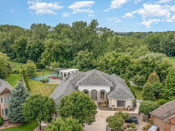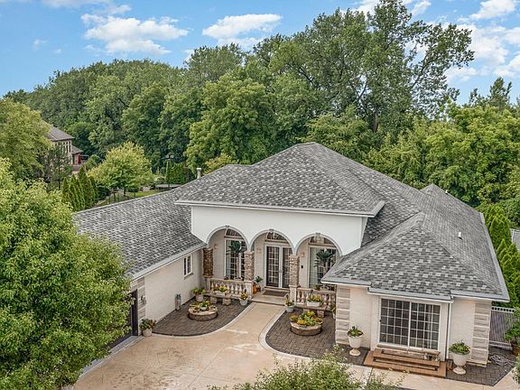 Welcome home to this Mediterranean-style custom built ranch! Featuring 4,643 sq ft of finished space, includes 4 bed & 5.5 bath. Location is key! Built on a quiet cul-de-sac in a highly desirable neighborhood, this gem features an in-ground pool. Slide in the HEATED 18x36 POOL or enjoy the sun on the beautiful patio. The pool has newer Liner, Filter, Heater, Cover and the Service is prepaid through the year! Other outdoor activities include a basketball half court that's interchangeable to tennis court, a beautiful 16X26 covered porch with wood-burning fireplace and a pool house! The entrance features an open concept and airy living room with a formal dining area. The luxury chef's kitchen features top of the line appliances with cathedral ceilings and skylights. Primary suite bedroom, while a SECOND PRIMARY SUITE is near for elderly parents, grandchildren, or friends! It even has its own separate entrance! The partially finished basement includes a bedroom and full bath.