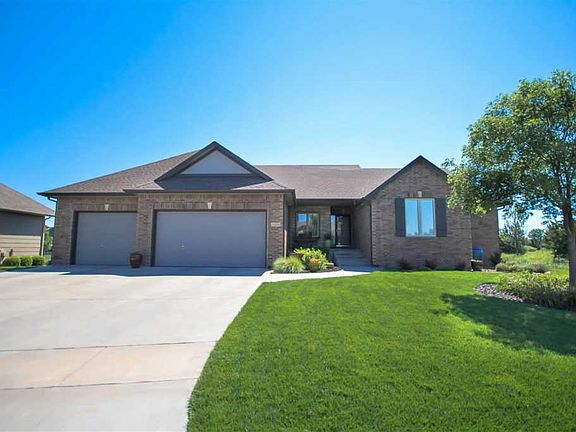 Gorgeous 5 bedroom, 3 bath home in the Fox Ridge Subdivision in northwest Wichita. Large corner lot next to burm. High ceilings and beautiful engineered hardwood floors in the kitchen/hearth room. Custom maple cabinets with plenty of storage and a walk-in pantry. Spacious rooms with 2 bedroom suites upstairs. Family room with fireplace, and over-sized wet bar with full-sized refrigerator and dishwasher downstairs. Large storage room downstairs as well. Lots of natural light throughout. Over-sized, 3-car heated garage with "drive-through" garage doors on the front and back of the third-car garage! Patio and deck in back- great for entertaining! The Fox Ridge Subdivision dedicates almost a third of the land to common areas with natural grass reserves and lakes nestled within the peace of the country yet are within the city. The neighborhood also has two pools and walking paths that connect to the elementary, middle and high school in the Maize school district. Call today to schedule your private showing!