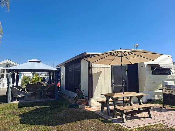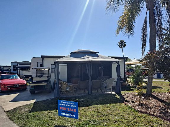 Park is Situated on Alligator Creek, Has Boat Ramp and Fishing Dock . Large Clubhouse on the Water , Firepit , Bocci , Hot Tub With Pool and Lots Of Organized activities !Lot Rent Total is $800 a Month (Includes Water ,Sewer, Lawn Maintenance) (No Other fees )This Unit is situated in the best spot , on the Corner with a Large Lot . Home Comes Fully Furnished with Washer and Dryer Dishwasher, 2 TV's , 2 Brick Patio's , 10'x13' Gazebo, 10'x24' Lanai , 2 Leather Sofa's , One is. Double Recliner , the other is a Queen size Sleeper. 2 Ceiling Fans, 2 AC Units and Much More ! Kitchen has Been recently Remodeled with New Stove exhaust hood counter tops and Lighting . The Bath has been updated with New Tub/Shower , pedestal sink and wall cabinet ! Plenty of Parking for Vehicles a day even a Small Boat ! Great Location, Minutes to Downtown Punta Gorda and Minutes To Punta Gorda Airport as well. Only 15 minutes to Charlotte Harbor By Boat and 30 Minutes to the Gulf of Mexico !!! Come See What SWFL Has to Offer you ! Fishing, Boating, Golf, Shopping, Restaurants, Beaches, and Beautiful Sunsets !