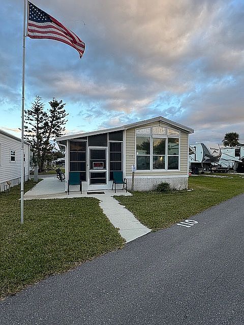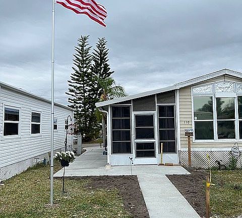 This updated manufactured "Park Model" feels like a home, not a trailer. The attached enclosed sunny lanai almost doubles the square footage and is heated and air conditioned. At the back end of the lanai is the enclosed laundry and storage room. The unit has a lot of storage space including a pantry and linen closets. The long wall of the bedroom has 2 closet spaces with a built-in dresser between. Between 2020 and 2024 the unit was completely updated with new flooring, appliances, bathroom vanity and chair-height toilet, plumbing, much electrical, ceiling fan/lights in LR, BR, and Lanai, light fixtures in dining area and bathroom, roofs on the house and the lanai, 2 mini-split heating/AC units + an A/C-Heater in the lanai, concrete patio and front sidewalk + addition to the rear parking pad (room for 2 vehicles). The basic furnishings remain - All appliances, tan LR couch and recliner, end table, TV, oak dining table w/2 chairs, queen size bed and 2 bedside tables; plus wicker couch and oak table w/2 chairs in the lanai. A wonderful winter home - Asking $45,000. Lot rent, but no property taxes - just renew the lic. plate each year. The fantastic location in the center of the Encore Gulf View RV Resort can become your warm winter retreat where you can quickly join in with all the fun activities day and night and become part of the "Gulf View Family"! The park has a modern club house with an exercise room, kitchen, pool table, and large space for dinners, dances, etc. Outside the clubhouse you'll find bocce ball, horseshoe, corn hole, and a boat launch into the adjoining creek. The front office adjoins the heated pool & hot tub, and shuffleboard court. The park is well-run and sponsors holiday and other events. The very active resident activities board sponsors a weekly park meeting to keep everyone informed of all of the weekly activities. This unit is for sale because the owner purchased a larger unit in the park. Imagine.... For just $45,000 you can have a winter home in one of the nicest towns and RV parks in FL along the gulf coast and just a half hour from major beaches. Inquire today!! (Owner is a licensed Realtor in Illinois)