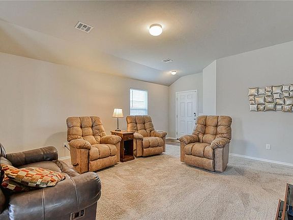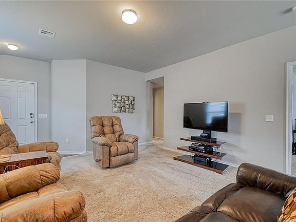 This darling home is practically brand new with 3 beds and 2 baths with many amenities including a 2 car garage with a storm shelter, front door key-less entry with a beautiful beveled glass storm door, 2 inch blinds, a security system, and sprinkler system. This home is in a great location and it's close to Chisholm Creek, restaurants, and shopping. Come see it today!