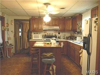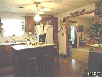 NEW PRICE!! A lot for the money with this spacious, country home, along with fenced acreage PLUS outbuildings! WOW! Open rooms include a large living room featuring built-in bookcases and the cozy family room complete with woodburning fireplace/insert for cool winter evenings! The country kitchen (new flooring) is the place for great family meals and opens to the dining area with new carpet. Two nice sized bedrooms plus a den, which can be converted back to a bedroom, offer great closet space. Enjoy a cup of coffee on the deck w/retractable awning for convenient shade! Four partially fenced acres plus the older barn makes this the perfect place to raise horses or cows. Another bonus is the machine shed for storing your equipment. AND, it's only minutes from town but located in the Springbluff school district! What more could you want?? This "Must See" home would make a great place to call HOME!