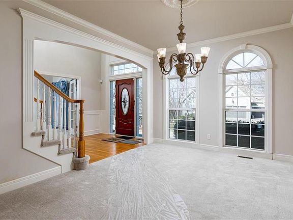 Great home with 4 bed, 3.2 bath. Floor to ceiling windows on main and lower level offers beautiful views of the 15th fairway and treed space. Eat in kitchen features pantry, wine closet and open to the hearth room with double sided fireplace. Multi level finished basement boasts an expansive bar with intricate hardwood, marble and 16 foot ceilings. Master suite has fireplace, sitting area and oversized bath and closet. Well maintained newer roof and HVAC systems. This beauty was Parade of Homes winner in 2003.