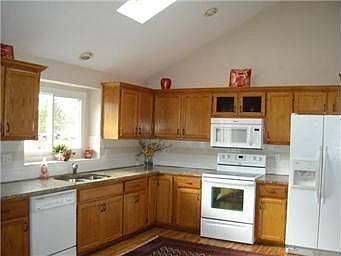 PERFECT OPEN FLOOR PLAN. NEWER ROOF, VINYL WINDOWS, FURNACE & HOT WATER HEATER. Gleaming new wood floors thru living areas. Large kitchen w/skylight, vaulted ceiling, granite, wood floor, brkfst room & sliding glass door to deck. Family room in walkout fin lower level. 3 bdrms, 2 baths, sub-basement & storage shed. Relax by fireplace in great room.