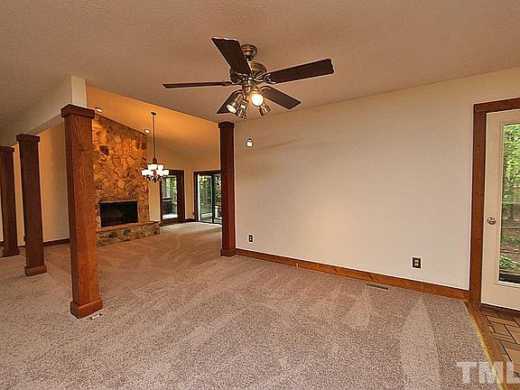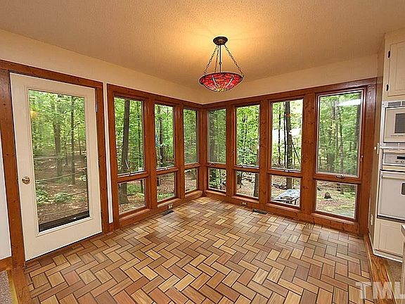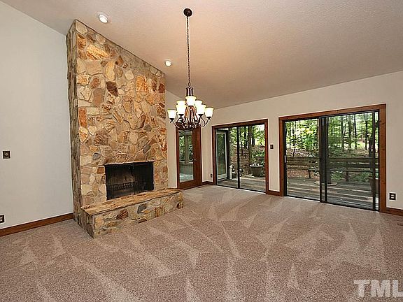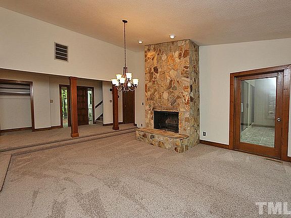 Beautifully wooded, one acre private setting - Spacious multilevel contemporary home - New carpet and fresh paint - Open floor plan with lots of windows - Bedroom, office and full bath on the first floor - Island kitchen with lots of cabinets - Vaulted ceiling in master bedroom - Step down living room w/ vaulted ceiling and stone front fireplace - Enclosed back porch/sunroom with hot tub - Full basement is partially finished - Circular driveway - Neighborhood pool and tennis is available to join