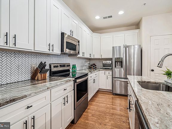 <b>OFFER DEADLINE - MONDAY APRIL 8TH AT 3 PM</b> Nestled in the vibrant heart of downtown Columbia, adjacent to the picturesque Lake Kittamaqundi, lies an exceptional gem – a RARELY AVAILABLE two-bedroom, two-bathroom condo adorned with exquisite renovations. Step into the modern chef's kitchen, a culinary haven featuring designer pendant lighting illuminating a chic island, complemented by stunning quartz countertops with herringbone tile backsplash. Custom white cabinetry, stainless steel refrigerator and built-in microwave complete the ensemble, ensuring both style and functionality. Entertain guests within the expansive dining and living room areas, enhanced by a dual-sided fireplace, designer fixtures, recessed lighting, and glistening hardwood floors. The generously sized owner’s suite offers a tranquil retreat, with upgraded carpeting, recessed lighting, and a walk-in closet. The adjoining spa-like owner’s bath is a sanctuary of luxury, boasting custom tile flooring, a frameless walk-in shower with beautiful tile surround, and a modern Corian double vanity. A linen closet and second closet with mirrored doors complete this room. A second spacious bedroom, also featuring upgraded carpeting and custom blinds, is conveniently located opposite the renovated hall bath, offering a tub / shower combo with a sliding glass door, custom tile flooring, shower niche, and recessed lighting. This light-filled home offers recessed lighting throughout. Step outside onto the balcony for al fresco dining and relaxation, complete with additional storage space. Lakeside Town Center condos provide peace of mind with a secure building, elevators, and covered underground parking with two assigned spaces. This home’s prime location offers unparalleled convenience, steps away from Whole Foods, dining, shopping, scenic lakes, walking paths, Columbia Mall, and the renowned Merriweather Post Pavilion. Commuting is a breeze with easy access to major routes 29, 32, and 100. Experience the epitome of luxury and convenience in this meticulously cared for home.