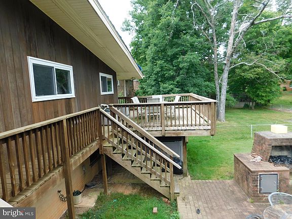 The Seller request closing with Cardinal Title since they have already completed the title search. NEEDS WORK. Two level Contemporary home with features include a two car garage, full basement, roof replaced 2023, brick patio with firepit, two storage sheds; side and rear chain link fence; wrap around deck, covered front porch, three main level bedrooms, hardwood flooring, beamed ceilings, two wood burning fireplaces. Price reflects the need for some repairs, renovation and updates. There are ceiling fans and hardwood floors in each of the three bedrooms; the family room features a wood burning fireplace and skylights; the kitchen includes ceramic tile flooring, stainless steel built-in microwave, stainless steel cooktop stove, stainless steel double sink below a window overlooking the rear of the property, refrigerator with water and icemaker, glass door kitchen cabinets, a ceiling fan; the living room features hardwood flooring, beam ceiling, a generous amount of windows for natural sunlight and a sliding glass door; the primary bedroom suite includes separate bedroom with a vanity area, a linen closet, ceramic tile flooring, tub with shower and a clothes closet; the main level powder room includes a window and vinyl flooring. The large basement features a fireplace with a stove insert, laundry room, wet bar, powder room.