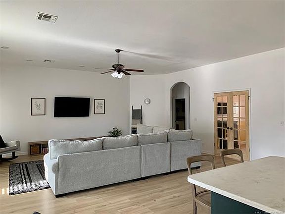 Just look at this fresh new listing in the heart of Owasso! Like new interior w/huge open living to kitchen & dining w/removable island, pantry, pull-out garbage, etc. Spacious master w/gorgeous updated private bath. 4th bedroom has french doors off o living is perfect playroom/offce/sewing/other. Large 2.5 garage. Covered back patio. Roof approx. 2.5 years. Walking distance to Bailey Elementary!