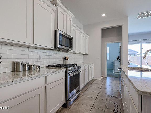 Looking for a new home? You've found it! This fantastic 4 bed, 3 bath residence boasts easy-care landscape w/artificial turf, and 3 car garage! Inside you will find a spacious open floor plan w/elegant flooring and designer palette throughout. The chef's kitchen is comprised of staggered cabinetry w/crown molding, a pantry, granite counters, tile backsplash, Kitchen Aid appliances, pendant lighting, and an island complete w/a breakfast bar. The primary bedroom boasts a walk-in closet and upscale ensuite w/dual sinks. Also including a wonderful backyard with extended patio and turf. This home simply has it all! Laundry room has built in cabinets and plenty of room for storage with the large linen closet right outside from it. Great home for entertaining family and living in luxury. Mulberry is not a close your garage and ignore your neighbors kind of place! Food truck Tues, large community events for all major holidays, movies in the pool, poker, bingo, bunco, paint nights, cornhole tournaments, yoga, 2 community pools, pickleball, tennis, basketball...THE NEW OLD FASHIONED NEIGHBORHOOD! Many grocery stores, fast food, restaurants, shopping and movie theater nearby. If you don't want to use the community gym LA Fitness is even right around the corner. You don't need to go far to get to anything. This is a great community very well located in Mesa! This is a 1 year lease with option to renew. Family up to 5 can live here comfortably. Water, gas and electricity are renters' responsibility. Low maintenance landscaping with bushes in the front that the tenants are responsible for upkeep. Pet friendly with fenced in yard and turf which means no mud to track into the home. Potty trained animals only.