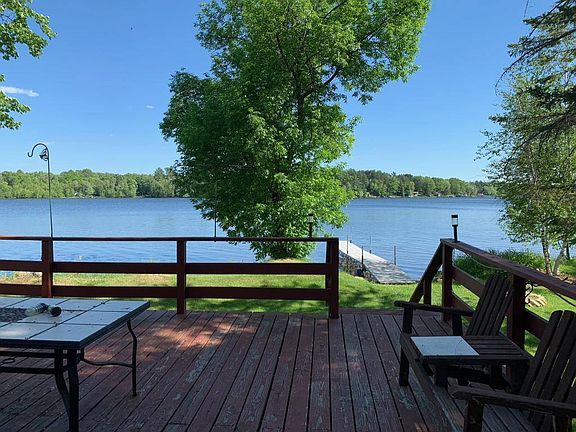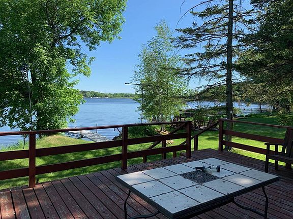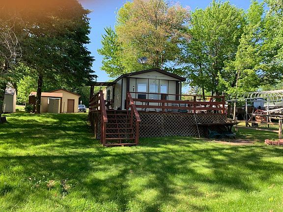 Snow Birds looking for an affordable place in the summer to enjoy Pine Lake? 2 bedroom/1 bath single wide Steel Sided Medallion Trailer (16 x 65) with open kitchen/dining/living room, large master bedroom with walk-in closet, and adjoining bathroom, and addl bedroom with laundry. Outside you have a lakeside a large wrap deck 18 x22 + 8x12 overlooking the lake, level lawn to lake, 41 feet of lakefront-sandy, patriot dock, sattelite toliet, 10 x 12 garden shed, 16 x 22 vinyl sided garage on a concrete pad with electric, asphalt driveway. Compliant Septic with 2 holding tanks - 2200 galllons, drilled well,upgraded windows, new forced air furnace and central air in 2015. Block foundation could easily be insulated and heated to make this a year round place if needed. Excellent access on frontage road off highway. Enjoy Pine Lake this summer with over 400 acres of recreation & fishing!