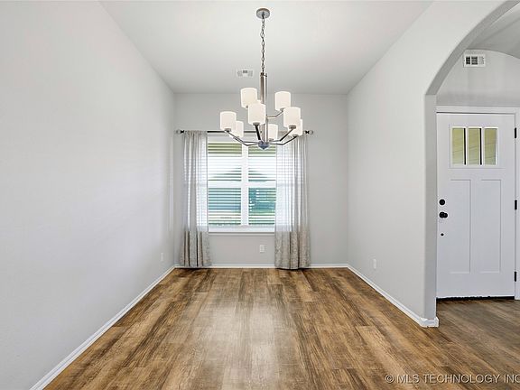 Fully fenced yardLarge front porchApron front sinkSplit bedroom planDining roomPrimary suiteWood-grain luxury vinyl flooring