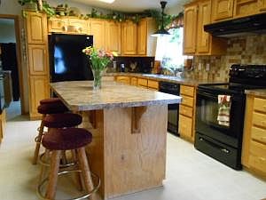 A fully landscaped park like yard, .90 acre, surrounds this nicely updated spacious home, nice kitchen with island, new paint & flooring, large rooms, 3 bedrooms, 2 full baths, master walk in closet, family room, dining room, 1,960 square feet, deck & patios for outdoor entertaining, fruit trees, raspberries, blackberries, mountain views including Clockum Ridge, automatic sprinkler system and more! Home has a concrete & block perimeter foundation. Buyer can have first option on 1 acre next door