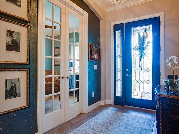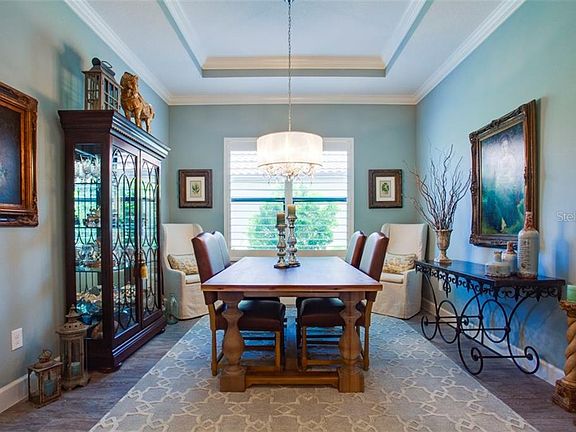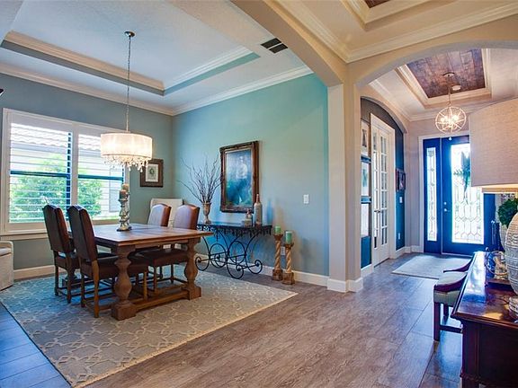 - Interior Features: Ceiling Fans(s), Eating Space In Kitchen, High Ceiling(s), Open Floorplan, Walk-In Closet(s), Crown Molding, Solid Wood Cabinets, Kitchen/Family Room Combo, Solid Surface Counters, Window Treatments, In Wall Pest System, Tray Ceiling(s)