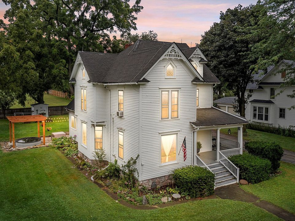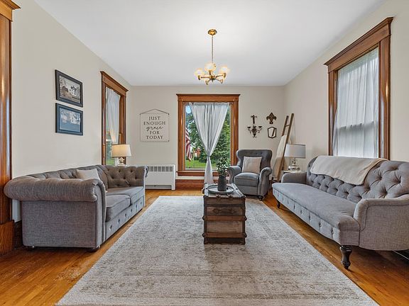 This exquisite turn-of-the-century Victorian home, lovingly maintained by its second owners, is now on the market for only the second time in its storied history. With its timeless old-world charm, this 2-story residence showcases stunning oversized wood trim and elegant pocket doors that are rarely found today. Nestled on nearly half an acre in a picturesque setting in the heart of Hebron, the home seamlessly blends historic beauty with modern comfort. A charming wrap-around porch invites you to relax and entertain, while the generous formal dining room is perfect for family gatherings. The home features five spacious bedrooms, including a versatile first-floor den that can serve as the fifth bedroom. The home boasts two full bathrooms and hardwood floors throughout. Additionally, a brand-new pergola has just been completed, and a chicken coop enhances the outdoor space. Experience the grandeur of yesteryear with the conveniences of today in this one-of-a-kind Victorian gem.