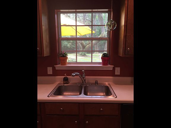 Easy living in this single story open floor plan home! Main living area has split brick floors which lead to laminate wood hallway, carpeted bedrooms, and tile bathrooms. Large kitchen offers loads of cabinets, counter space with breakfast bar, Stainless Steel refrigerator. Master bath has dual vanities and large walk-in closet. Fenced backyard offers breathtaking Oak trees. New 2012 outside A/C.