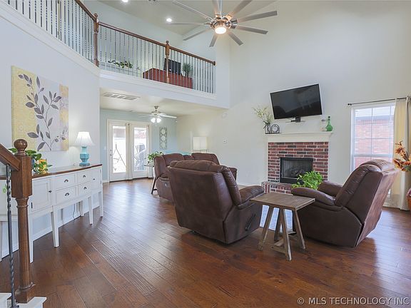 (Buyer's funding tanked. No fault of Seller.) Beautiful 2-story home with 3 bedrooms, 2.5 bathrooms, huge eat-in kitchen, hardwood floors, extended back patio, fresh interior and exterior paint. Living area ceiling is extra tall to 2nd floor. Whole house is full of natural light. This home has extensive storage. Spacious master bathroom has his/her sinks, his/her closets, and jetted whirlpool tub with separate shower. Upstairs landing is large enough for office space or game area. Close to award-winning Bailey Elementary and all the shopping and restaurants Owasso has to offer!