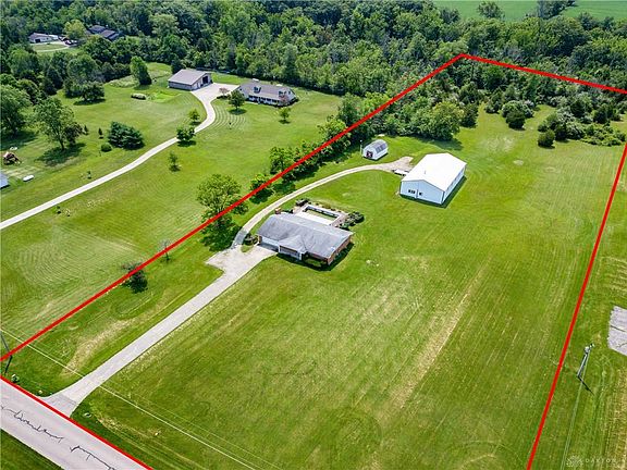 This brick ranch is quite deceiving! Featuring approximately 1700 square feet of space in addition to a full, semi-finished (waterproofed appx 1 year ago) basement. Fireplace in basement has an insert with thermostat. Anderson windows. Central air appx 4-5 years old. Split bedroom areas. Owner suite has walk-in closet and full bathroom. The basement also has electric baseboard heat. 200 amp electric to house. This is situated on 5 acres. There are two outbuildings. The larger barn is 40 x 72 with electric, 200 amp, 220, concrete floor, hydraulic lift and a full 1-bedroom apartment which has electric, propane heat and water. Utilities to apartment have been turned off for years. The second barn is 16 x 24 and has electric. Covered patio with fenced in area for inground pool (which needs a liner) and has a sand filter. The roof is 8-10 years old. Septic tank was inspected in July 2021. Tap-in fee to Jefferson Twp water has been paid but not hooked up.