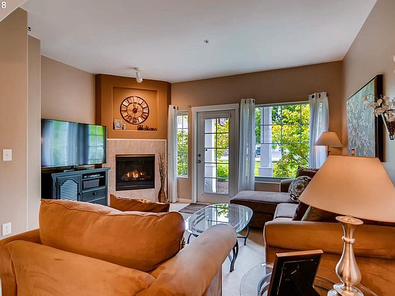 Light & bright condo with open floor plan across the street from a park! Great kitchen w/ tile counter tops, eating bar, and adjoining living room w/ gas fireplace. Large bedrooms with natural light. Attached tandem 2 car garage with additional storage. Minutes to Nike, Intel& Kaiser campuses, shopping at The Streets of Tanasbourne, Whole Foods, restaurants, park/walking trails and more!