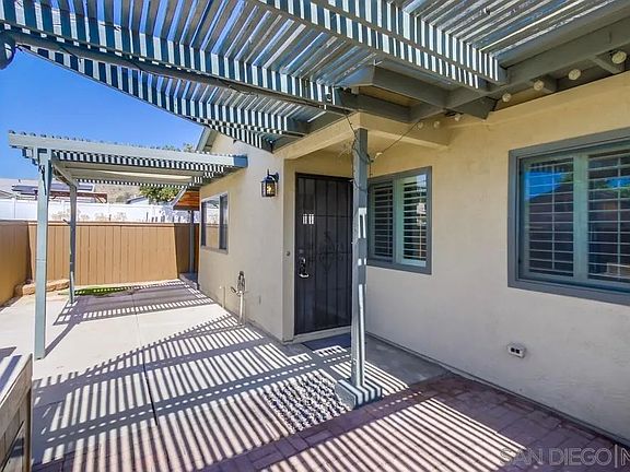 Cute single story ground level Condo in the heart of Santee with a big yard! This 2 bedroom 1 bathroom, 832 square foot private unit has Central Heating & Air Conditioning, wood vinyl flooring, beautiful plantation shutters, french door to covered patio! Gas cooking, there is a full sized laundry closet inside with a washer & dryer, Natural lighting with Solar Tube in bathroom. Newly painted inside & out, New Garbage Disposal, New Lighting, New Closet Doors, New Outlets and Switches, Bathtub Refinished & a New Water Pick Shower Head. Built in outdoor bbq and there is a 1 CAR GARAGE & 1 parking space. Two community pools and playgrounds nearby! Close to Woodglen Vista Park, and is close to shopping, Costco, dining and freeways!