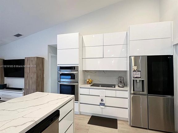 NO HOA APPROVAL REQUIRED: Spacious home, high ceilings, 4 large bedrooms, 2 full baths, open floor plan, oversized waterfront lot, and a large pool. Fully renovated with high-end finishes. Custom made closets in all rooms. Contemporary kitchen with lots of cabinet storage, a hidden coffee bar, pantry, oversized island counter that seats 8. Modern baths, a spa bathtub in the master bath. All new light fixtures. New Italian porcelain floors, impact windows/doors, new roof. Direct lake views (sunset views), Outdoors: sandblasted marble pavers, renovated pool with new heater, salt water system, and fountain. New custom large wood pergola. All fenced in for privacy. New landscaping. No association approval needed. 2 mins from Pines City Center, great schools, quick access to Turnpike, shopping centers & restaurants. This rental listing is presented to you by Compass Florida, LLC Frank Beltre, Broker Beltre Realty Services ML#: A11819185