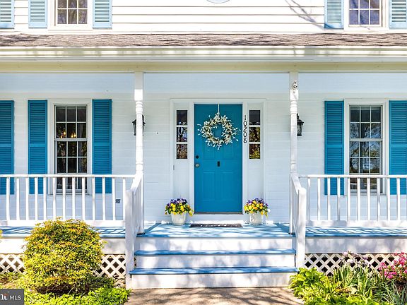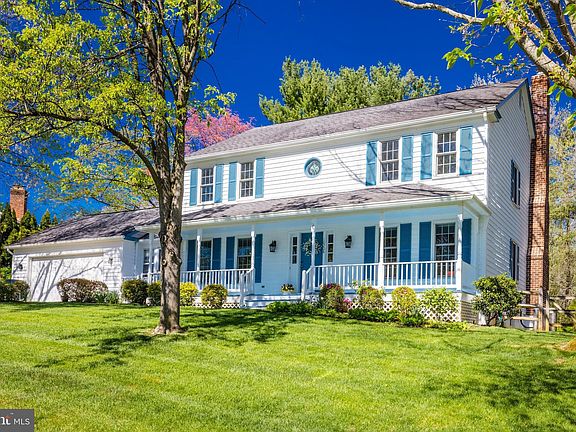 This fabulous farmhouse with welcoming covered front porch has been meticulously maintained. The home is sited near the end of a cul-de-sac street on a level lot with beautifully landscaped fenced back yard featuring mature flowering trees and gardens. Plus separate vegetable garden. Inviting foyer with gracious turned staircase and hardwood floors leads to light and airy living room with French doors. Dining room with Butler's pantry is great for entertaining! Renovated kitchen w/maple cabinetry, stainless steel appliances, gas cooking, pantry w/pull out drawers, platter storage and soft close drawers & doors. The butlers pantry/beverage center off kitchen is also a great place for coffee bar in the am. The breakfast area has door to deck and beautiful view of back yard. Family room off the kitchen has a recently replaced gas fireplace and built-in book shelves on both sides of fireplace plus bay window overlooking the gardens. Incredible office/library with cathedral ceiling has private front entrance as well as door to private back yard. There is a main level laundry or it could be made into a mud room. Upper level primary suite has dual walk in closets as well as sitting room/dressing room with an additional closet. There are three additional bedrooms on upper level. Lower level with recreation room, potential wet bar and amazing second laundry center with closet. There is also a large storage room on lower level with walk-up to back yard. Spacious deck off kitchen is perfect for entertaining and the view is spectacular!