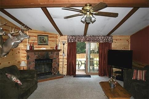 This beautiful log sided home is a must see. The wonderful open concept home offers a livingroom with a cathedral ceiling, gas fireplace, new knotty pine car siding and sliding glass doors that lead out to the deck. The dining area has a built in cabinet for display. Kitchen is accented with hickory cabinets, granite countertops and backsplash, and hardwood flooring. Master bedroom boasts a recently remodeled spacious master bath. The finished laundry room has lots of shelving and cabinet space for storage. Two and a half car garage and a two car carport offer plenty of covered parking area. Driveway was recently sealed. This corner lot is 1.52 ac, partially surrounded by pine trees with a fenced back yard that gives you a great feel for nature. Great location - just a couple minutes to I65 for easy access to shopping, entertainment, restaurants, only 30 minutes to Merrillville and an hour to Chicago.