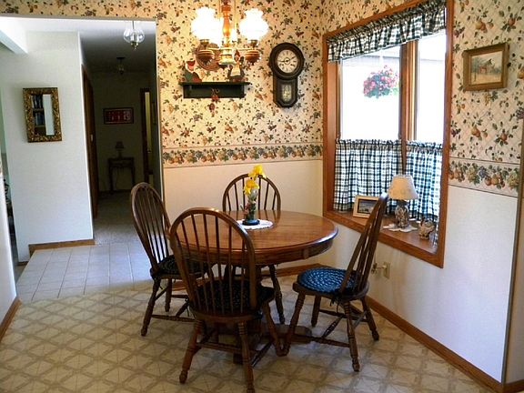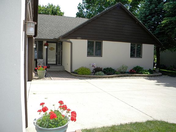This lovely home is warm, inviting, and bright throughout! It is located in the Sunrise Ridge Addition of Mason City. This 3 bedroom home has a beautiful modern kitchen with pantry and eat-in dining area. Step down to the living room with a wood burning fire place faced in stone to the top of its vaulted ceiling. The hardwood floor in the formal dining room adds a warm and inviting feeling. The master suite is spacious offering his and hers closet space, linen closet and a three quarter bath. The first floor laundry is conveniently located on the main floor. The finished basement has newer carpet, extra storage space, a family room with built in shelving, a bedroom area with bath, and kitchenette for family entertaining. Walk out to your modern deck and beautifully groomed back yard surrounded by flowers and mature trees. The Exterior of the home is finished with an insulting material called Dryvit . this home is an architectural master piece. This home is conveniently located minutes from schools, shopping and restaurants. This well maintained and lovingly cared for home truly shows pride of ownership! Call Kathy at 641-420-4286